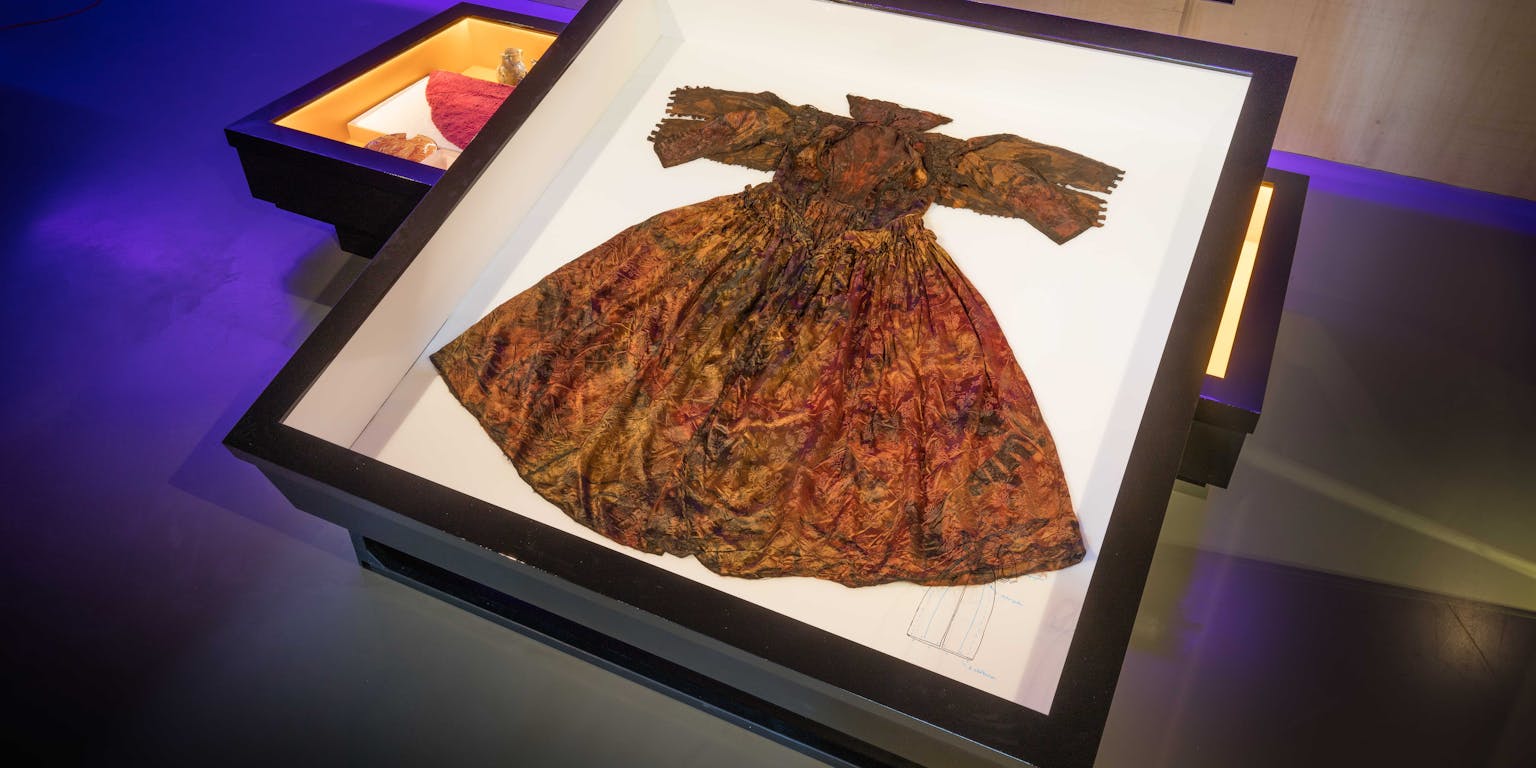 De opgedoken jurk is kwetsbaar en wordt maar een maand tentoongesteld. Vanwege die kwetsbaarheid ligt de jurk en kun je niet zien hoe zij een vrouw gestaan zou hebben. Het is de bedoeling om een mooie reconstructie voor het publiek te maken. De reconstructie zou wel op een paspop kunnen, zodat ook de achterkant zichtbaar is.