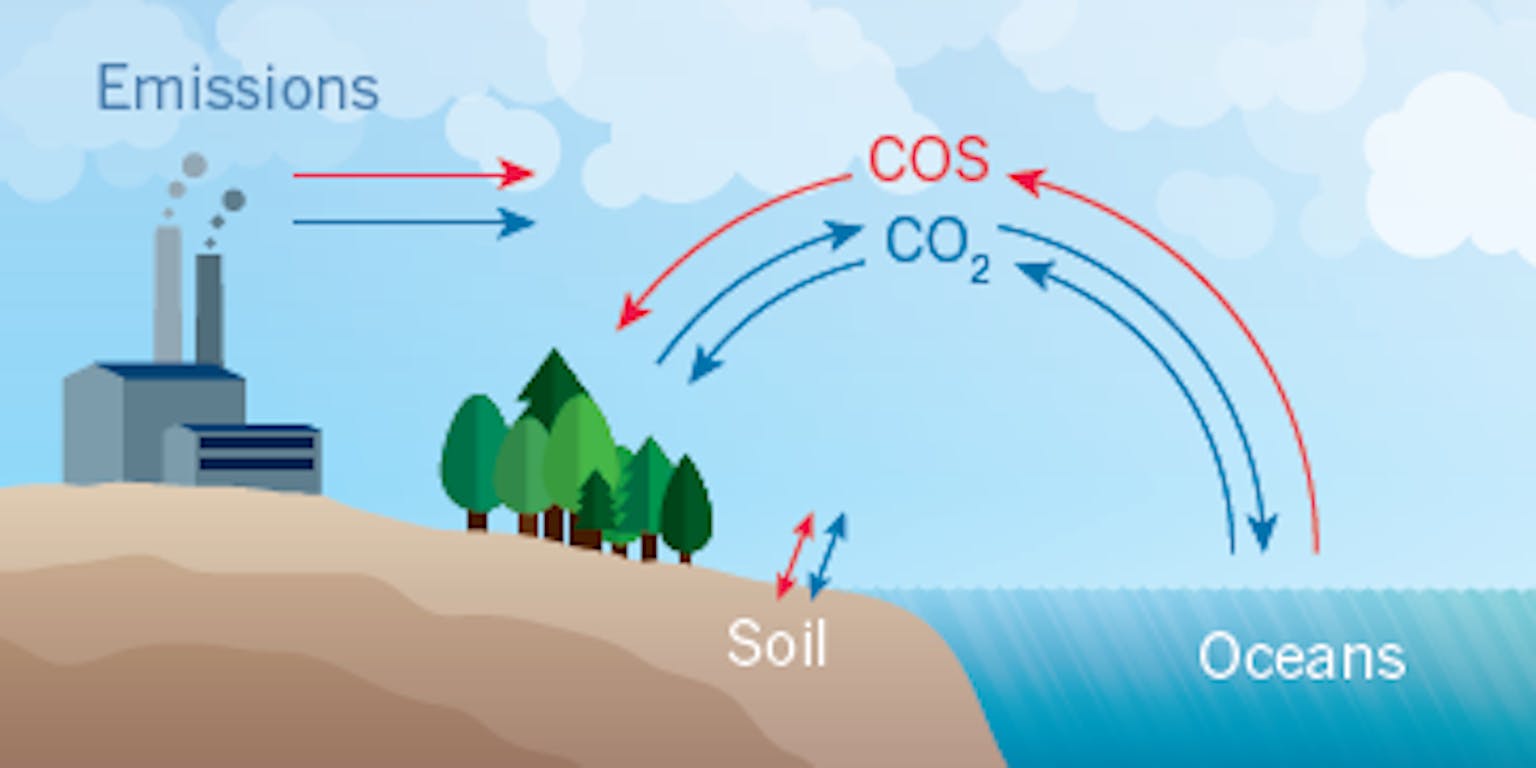 De indicatorstof is COS (carbonyl sulfide, dat lijkt op CO2, maar één zuurstofatoom is vervangen door één zwavelatoom). Dit molecuul ontstaat in minuscule hoeveelheden bij natuurlijke processen aan de oppervlakte van de oceaan. COS komt terecht in de atmosfeer, en omdat het chemisch gezien lijkt op CO2, wordt het ook door planten opgenomen wanneer in hun bladeren fotosynthese plaatsvindt.