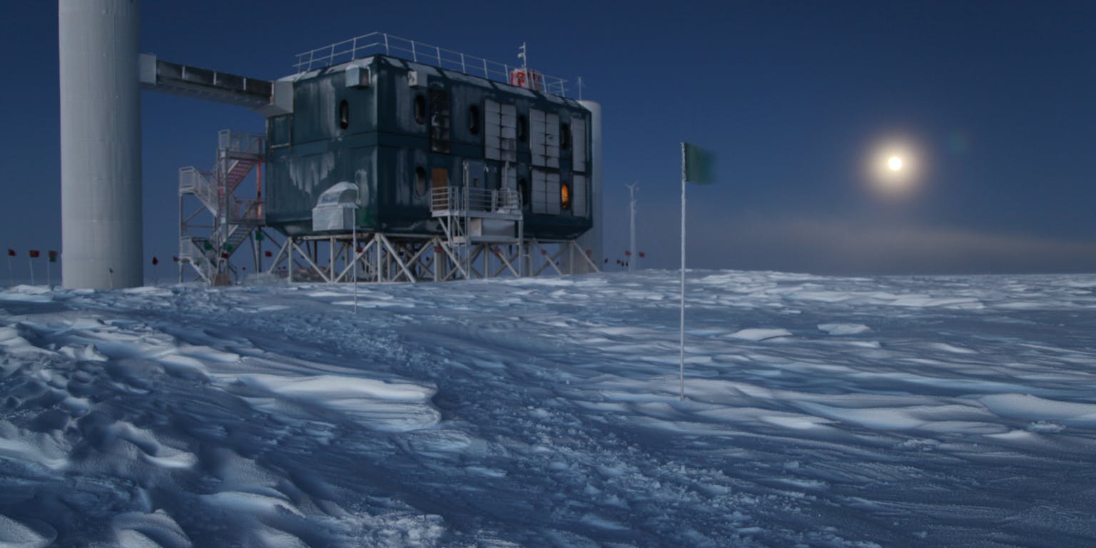 Het detecteren van neutrino’s heeft nogal wat voeten in de aarde. De deeltjes hebben nauwelijks massa, geen lading en bewegen met bijna de lichtsnelheid door het universum. Daarbij reageren ze vrijwel nooit met de overige materie die ze tegen komen en dat maakt ze erg lastig te ‘vangen’. Slechts gigantische observatoria bestaande uit duizenden detectors kunnen af en toe een spoor van geladen deeltjes waarnemen dat ontstaat wanneer een neutrino de kern van een atoom precies goed raakt. Die geladen deeltjes, onder andere elektronen en muonen, worden zichtbaar door een lichtgloed die ze afgeven als gevolg van hun hoge snelheid. En precies dat is wat IceCube kan waarnemen in het ijs van Antarctica.