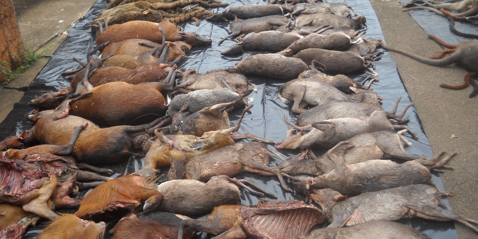 In beslag genomen dieren die illegaal zijn geschoten in Kameroen.
