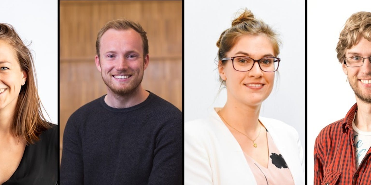 Vlnr: Iris, Jim, Franziska, en Nick. Deze ervaringsdeskundigen geven jou advies voor het kiezen van een studie.