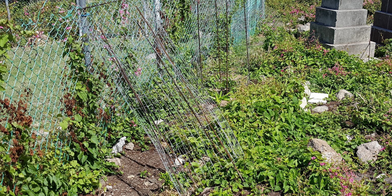 Het hekje waarbinnen ooit een citroenboompje stond. 24 april 2018 op Saba.