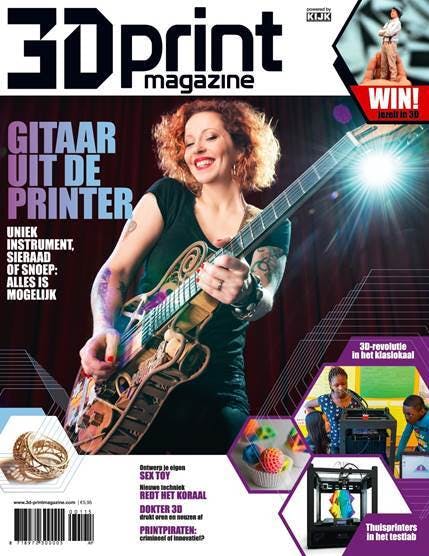 Lofzang op de mogelijkheden van 3D-printen13 mei 2015Recensie 3Dprint MagazineEen gitaar uit de 3D-printer? Geen probleem. Het nieuwe 3Dprint Magazine bevat veel mooie verhalen over wat je met 3D-printen kan doen. Het eerste nummer smaakt naar meer, al zit er helaas wel nog ...