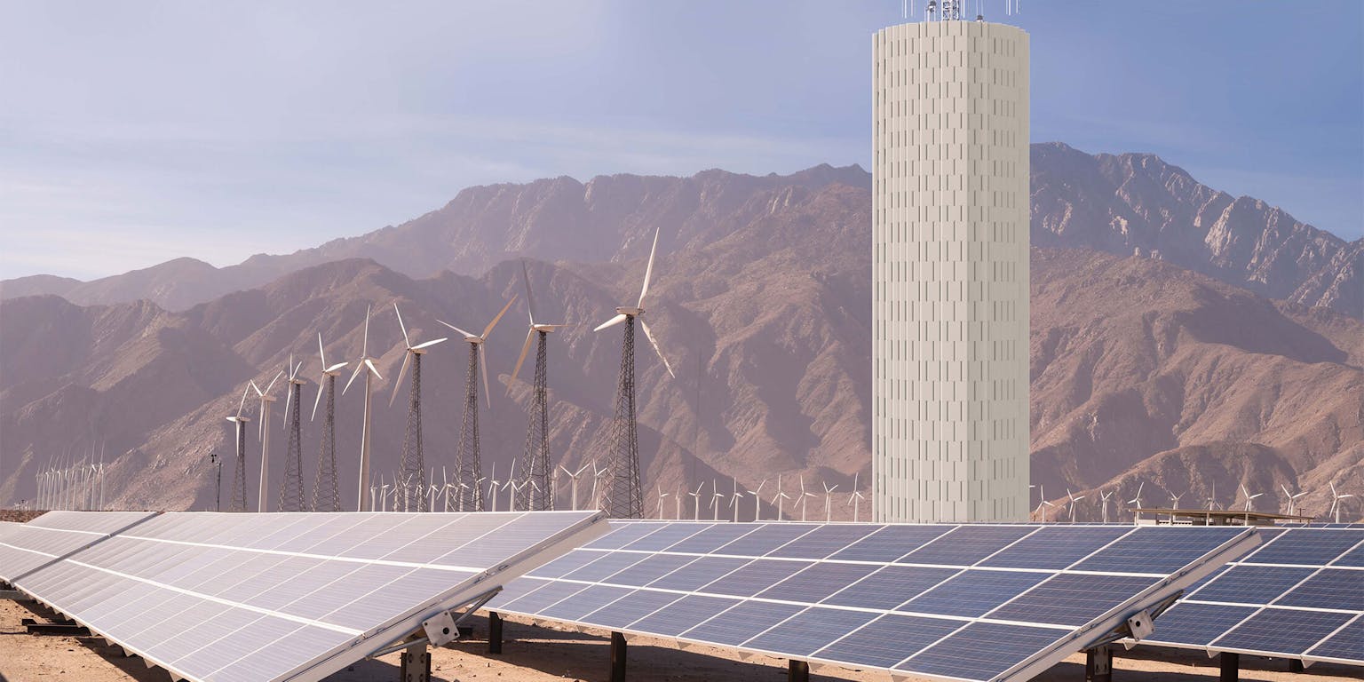 Deze energietoren, soms ook wel de ‘Tower of Power’ genoemd, is een idee van de Zwitserse firma Energy Vault en is eigenlijk een reusachtige mechanische batterij. De gebruikte technologie is volgens de bedenkers geïnspireerd op die van stuwmeren, waarin water ‘op hoogte’ wordt opgeslagen. Dit water drijft bij de gecontroleerde uitloop een turbine en dynamo aan. Je kunt dat principe ook omkeren: water omhoog pompen en zo energie opslaan. Ook dat gebeurt in stuwmeren.