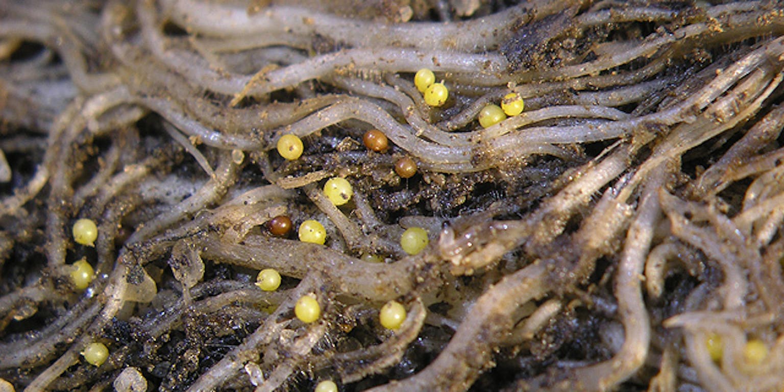 Deze gele cysten van het aardappelcysteaaltje (Globodera rostichiensis) hebben telers niet graag in hun bodem. In de cysten zitten de eitjes waaruit jonge aaltjes kruipen als aardappelplanten gaan groeien.
