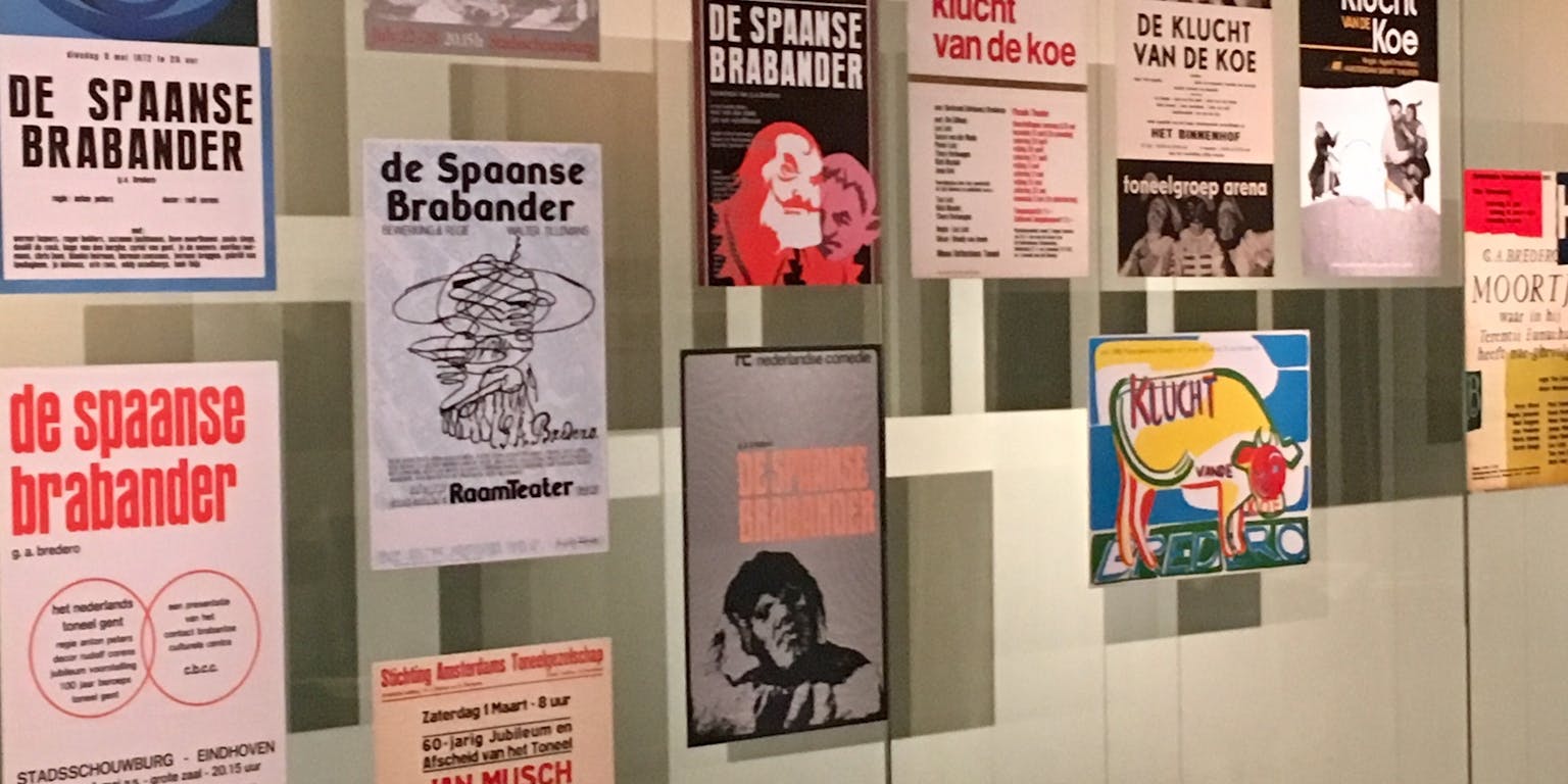 Wanneer je de kleine tentoonstellingsruimte binnenkomt, staan er drie vitrines met oude boeken en prenten. Aan een wand hangen posters van Bredero’s toneelvoorstellingen uit de vorige eeuw. Op het eerste gezicht misschien miniem, maar de tentoonstelling is niet compleet zonder de bijbehorende apps, volgens Jansen.