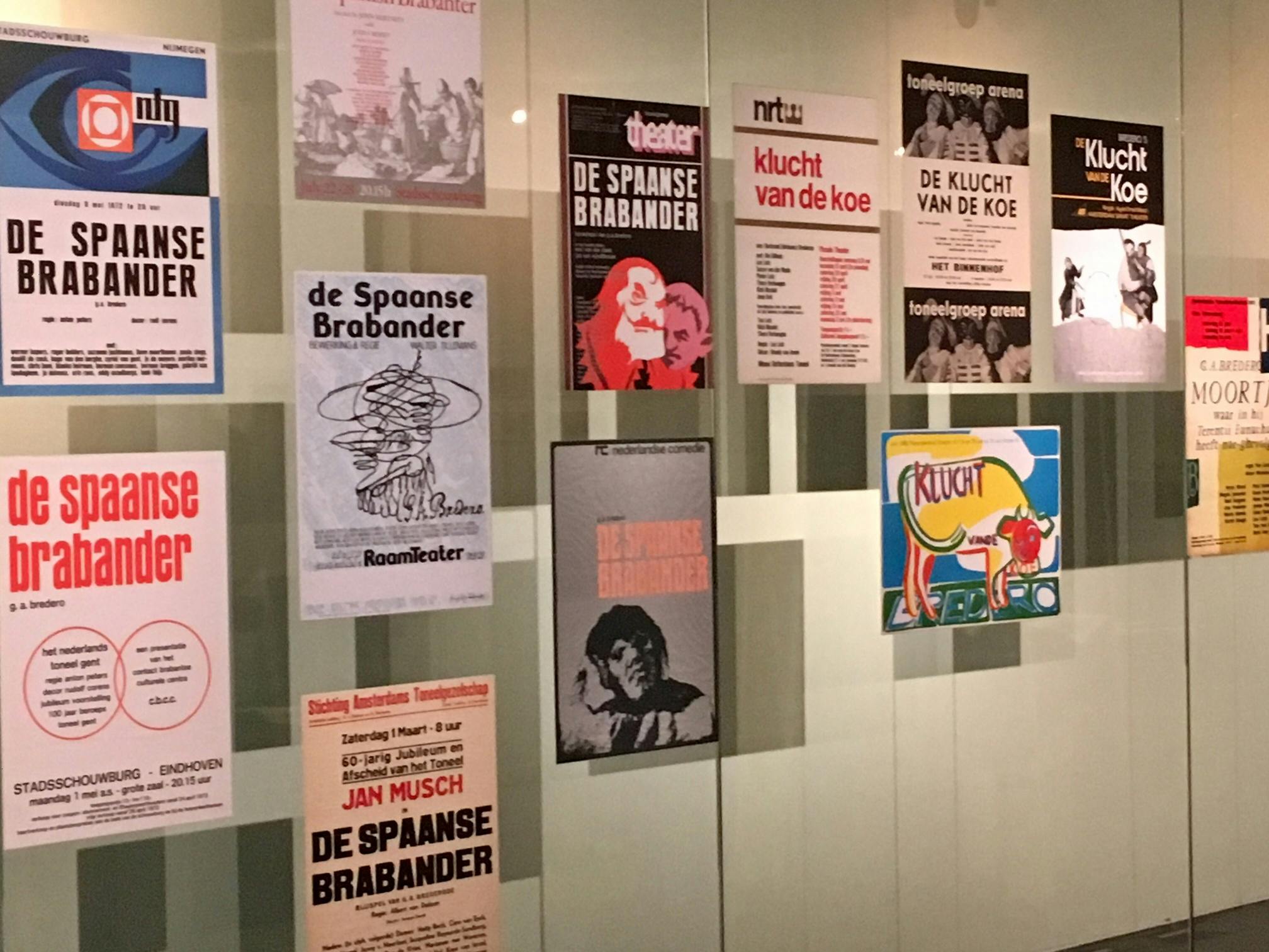 Wanneer je de kleine tentoonstellingsruimte binnenkomt, staan er drie vitrines met oude boeken en prenten. Aan een wand hangen posters van Bredero’s toneelvoorstellingen uit de vorige eeuw. Op het eerste gezicht misschien miniem, maar de tentoonstelling is niet compleet zonder de bijbehorende apps, volgens Jansen.