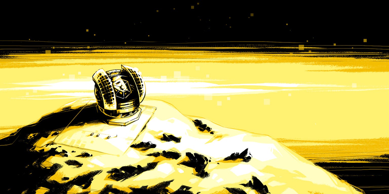 ESO/L. Calçada via CC BY 4.0De regel is simpel: hoe groter je telescoop, hoe kleiner de details die je ermee kunt waarnemen. In een artikel rekent Labeyrie voor hoe groot de spiegel van een telescoop moet zijn om continenten op een aardachtige planeet rondom een ‘buurster’ te kunnen zien: 150 kilometer. Dat is bijna vierduizend keer groter dan de grootste optische telescoop die we nu bouwen: de Extremely Large Telescope heeft een spiegel van 39 meter. Zoiets op aarde bouwen is vrijwel onmogelijk, maar Labeyrie denkt dat dit wel in de ruimte lukt. Zijn idee is om een zwerm van kleine spiegels te lanceren en die nauwkeurig te positioneren, zodat ze als het ware samenwerken als één grote spiegeltelescoop die het beeld van een verre wereld uitvergroot. Hij noemt dit concept een hypertelescoop.