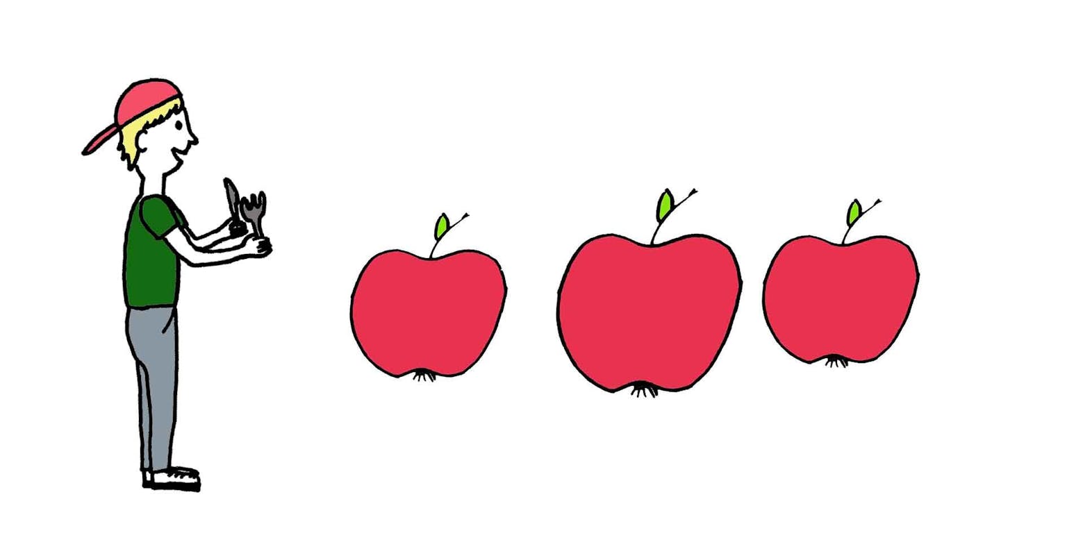 Sybren Spit voor NEMO KennislinkZoals je op de plaatjes kunt zien, zie je naast de personages ook een aantal objecten. Die objecten komen in verschillende hoeveelheden voor. Die hoeveelheid wordt bepaald door een specifiek woordje in de zinnetjes. In het ene zinnetje staat namelijk het woordje pli en in het andere zinnetje het woordje tra. De regel is dat wanneer pli in het zinnetje staat, er altijd meerdere objecten te zien zijn en dat wanneer tra in het zinnetje staat, ieder aantal objecten te zien kan zijn.