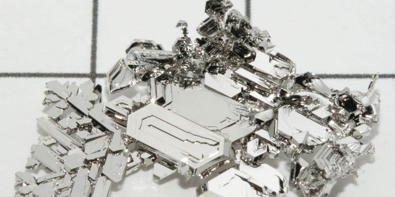 Platinum in kristalvorm, in het lab gemaakt. Het is één van de duurste metalen en is dan ook regelmatig te vinden in sieraden. Het wordt gezien als statussymool, omdat platina nog duurder is dan zilver of goud.