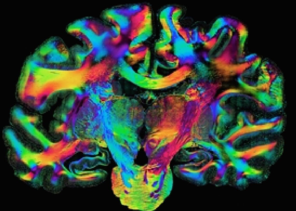 Maar hoe kan het dat deze structuur nog niet eerder ‘ontdekt’ is? Andere nuttige technieken die al langer gebruikt worden om zenuwbanen te onderzoeken hebben zo hun eigen beperkingen. Dissectie, bijvoorbeeld, waarbij de witte stof-banen met spatels voorzichtig vrijgemaakt worden uit post-mortem hersenen, is vooral geschikt om paden langs één bepaalde richting te volgen (Fig. 2a). De roosterstructuur kan zo mogelijk gemist worden. Polarized light imaging (PLI), waarbij de richting van zenuwvezels bepaald wordt met behulp van licht (Fig. 2b), maakt gebruik van dunne plakjes weefsel. Het is uitdagend om hieruit de 3-dimensionale structuur terug te reconstrueren, maar hier wordt nog volop aan gewerkt.