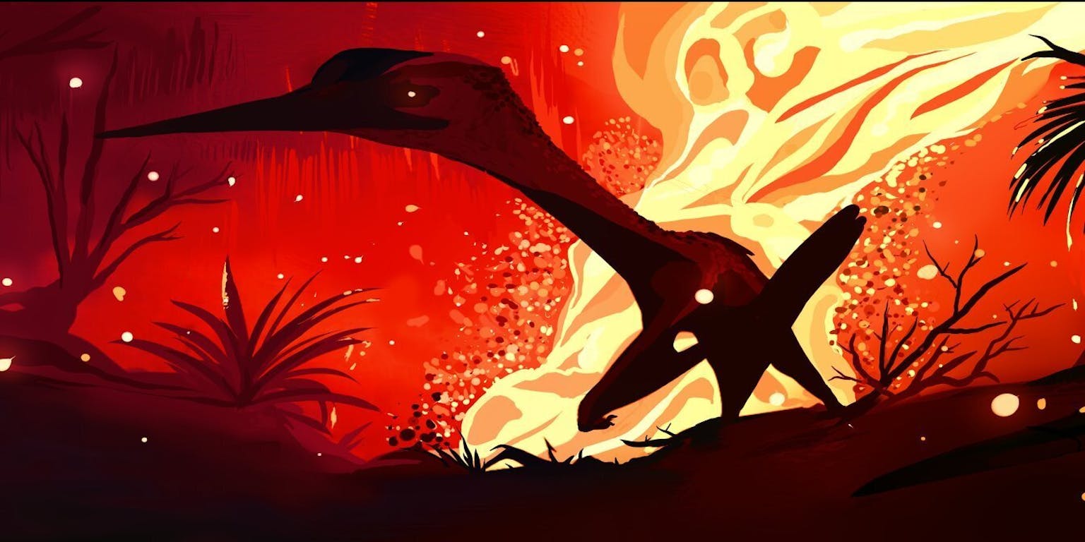 Quetzalcoatlus na de planetoïdeinslag die ongeveer 66 miljoen jaar geleden plaatsvond.
