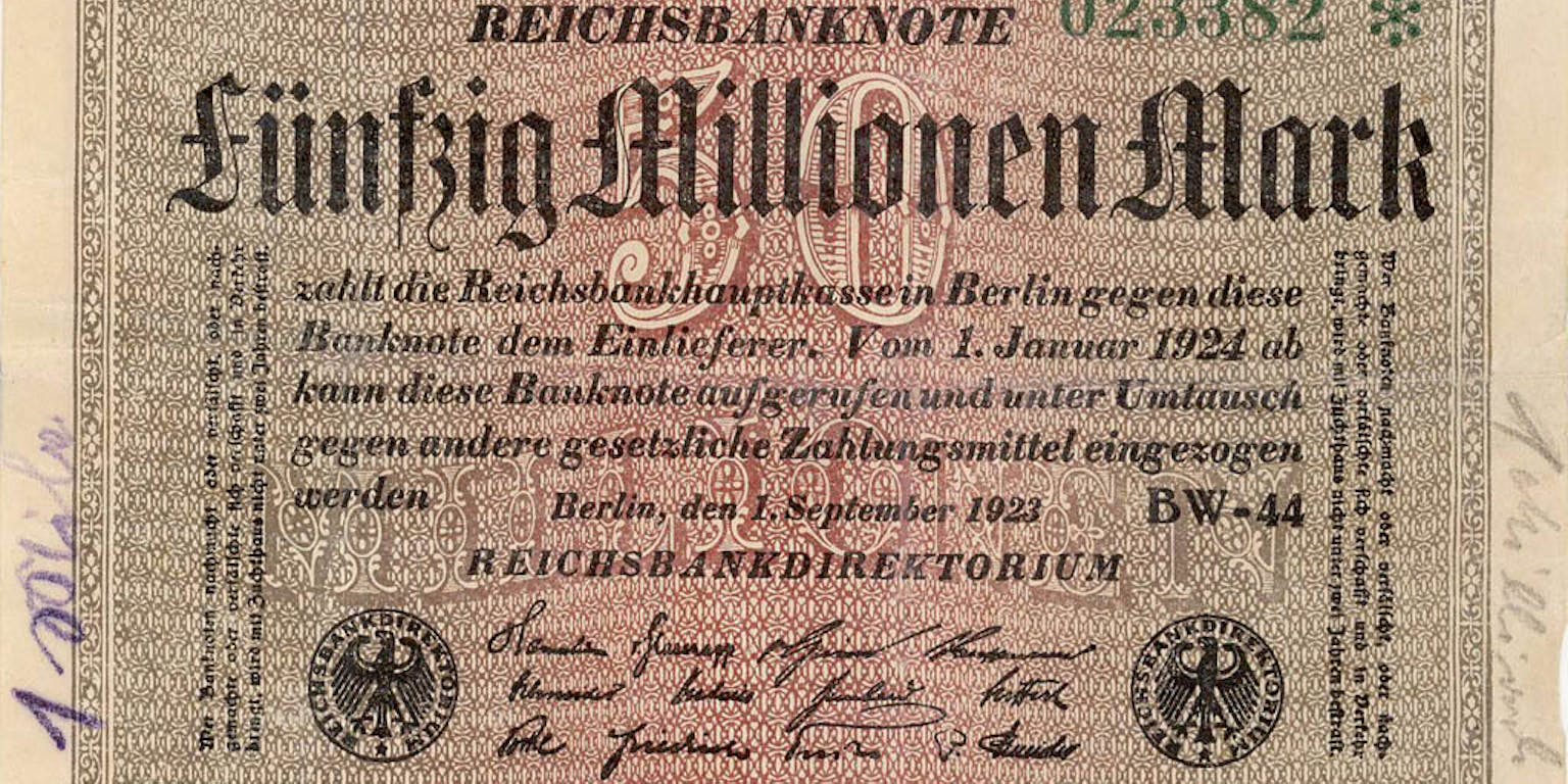 In 1918 erfde de Weimarrepubliek de oorlogsschulden van het keizerrijk. Terwijl ze grote herstelbetalingen moest betalen, resulteerden de verloren oorlog en ineenzakkende economie in onoplosbare sociale en politieke problemen. Belastingverhogingen om de schulden te voldoen waren nauwelijks een optie. De regering moest lenen en kon dat alleen bij de Reichsbank, die de benodigde gelden verstrekte door bankbiljetten te laten drukken.