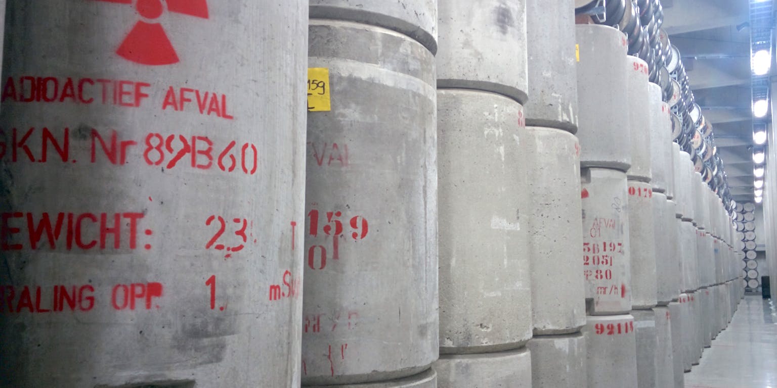 Roel van der Heijden voor NEMO KennislinkHet is best een indrukwekkend gezicht. Vanuit het centrale gedeelte van de loods zie ik vier opslaghallen met talloze betonnen vaten die keurig zijn opgestapeld. Als ik dichterbij kom kan ik de rode geverfde letters op de vaten lezen. De meeste vaten hebben een reeks onbeduidende letters en cijfers, sommige zijn zo gedraaid dat ze meer prijsgeven: ‘RADIOACTIEF AFVAL’, vergezeld met het bekende stralingssymbool en informatie over het gewicht en de mate van radioactiviteit van wat erin zit.