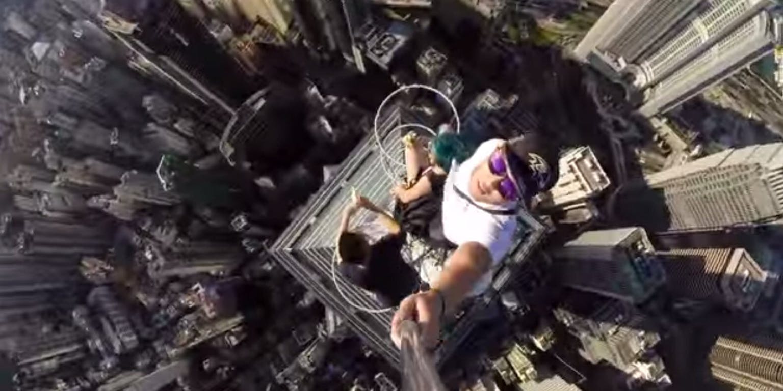 Daniel Lau maakt een selfie met zijn vrienden op de top van een wolkenkrabber in Hongkong. Een echte narcist denkt al dat hij of zij reden heeft om zichzelf in de hoogte te steken na het beklimmen van een barkruk.