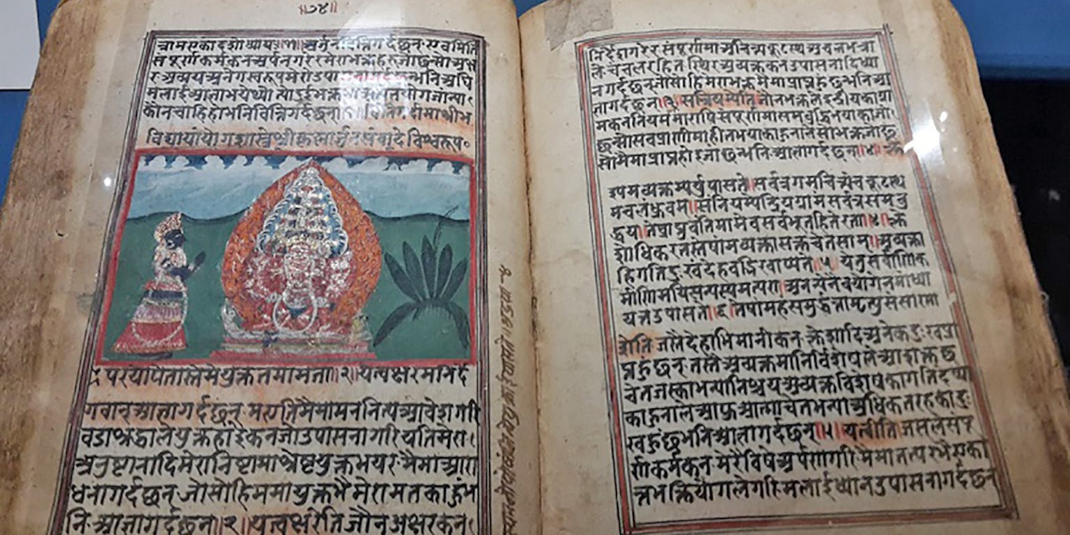 In de Universiteitsbibliotheek van Leiden is deze zomer een kleine tentoonstelling ingericht over het Sanskriet. Er zijn allerlei manuscripten en beeldjes te zien, voornamelijk afkomstig uit het archief van de universiteit. De tentoonstellingsmakers willen vooral laten zien hoe het Sanskriet zich heeft verspreid binnen en buiten India. En hoe dat bijvoorbeeld heeft gezorgd voor een grote variatie in het schrift.