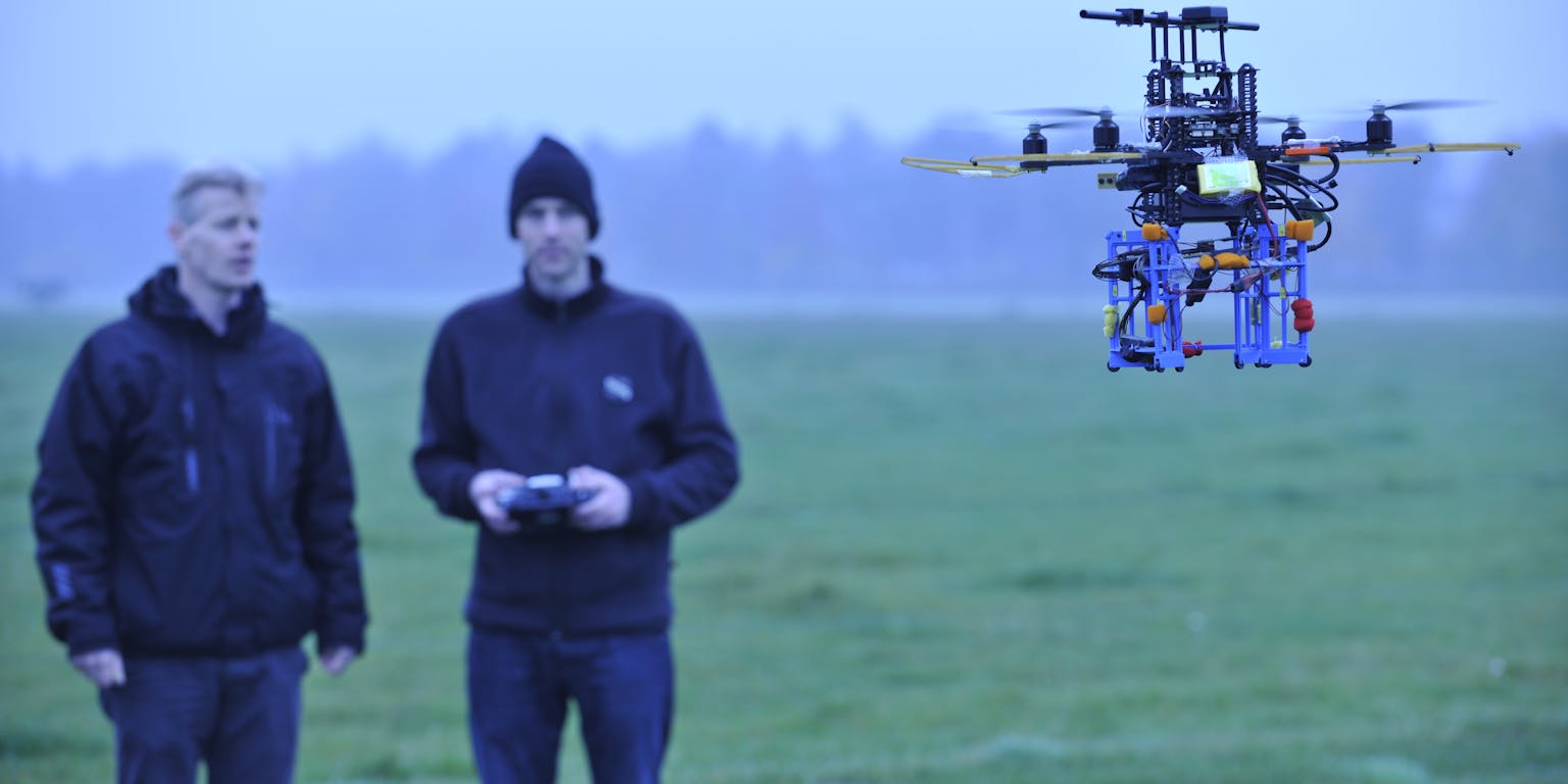 Aan de TU Delft werken ze bijvoorbeeld met een automatisch systeem, waarbij de vliegtuigjes in een zwerm vliegen en informatie verzamelen. Ze volgen dan bijvoorbeeld een leider. Of ze stoten elkaar af en trekken elkaar aan op plekken waar juist al veel of nog weinig informatie over is. Dat is handig bij een boer die in kaart wil brengen welk deel van zijn land besproeid moet worden, maar ook voor de politie die een mensenmassa in de gaten houdt. Als operators moeten ingrijpen, hoe gaat dat dan? En met welke vorm van besturing?