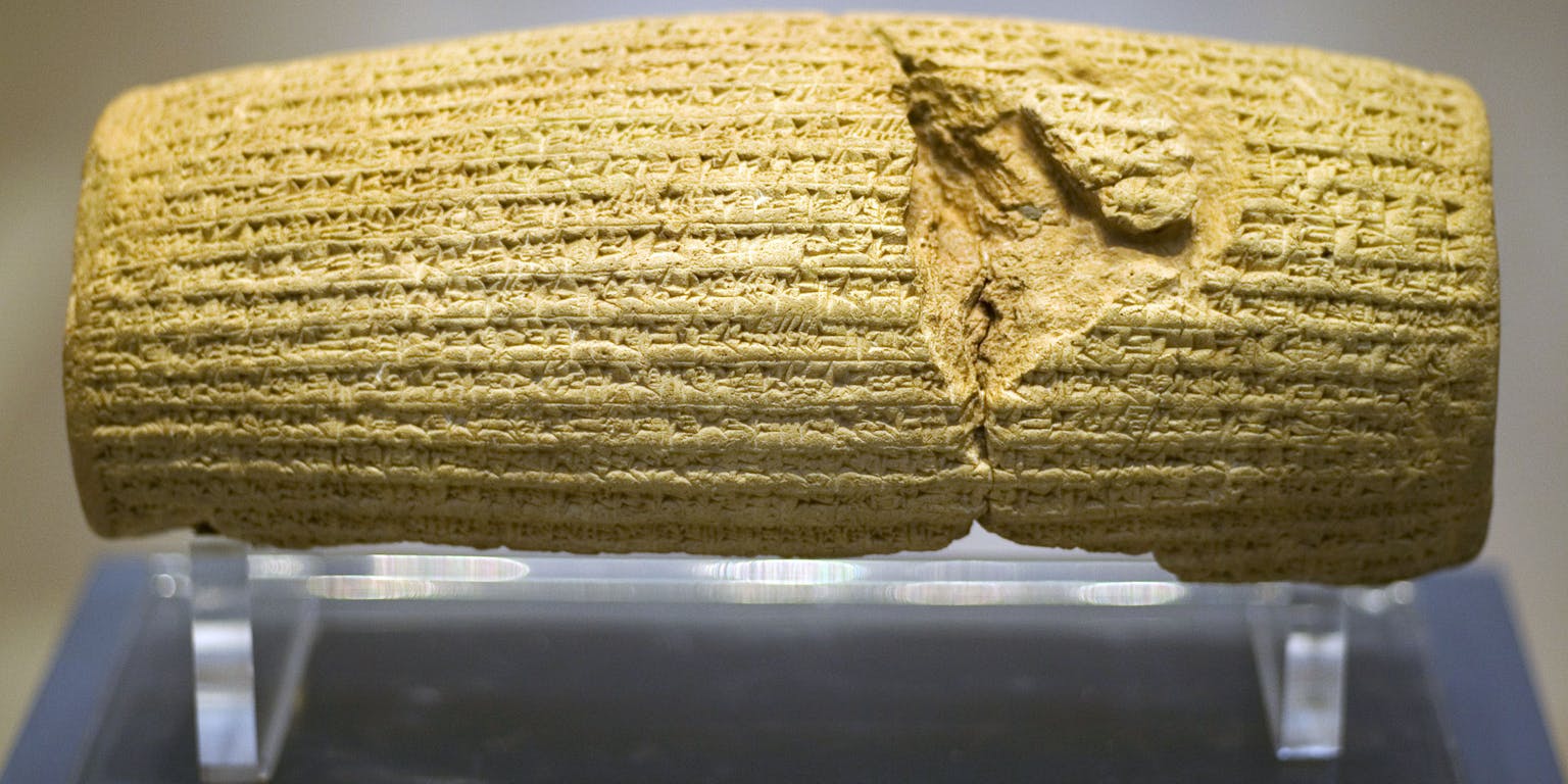 Toen ik het nieuwsbericht over de Freedom Sculpture voorbij zag komen op Facebook, gingen mijn wetenschappelijke voelsprieten recht overeind staan. De cilinder is alom bekend in mijn vakgebied – en er is geen zichzelf respecterende historicus die het ooit een ‘mensenrechtenverklaring’ zou noemen. Wat is het dan wel?