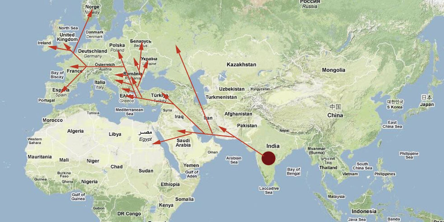 Het laatste nomadenvolk van de westerse wereld heeft veel namen. In Engeland heten ze gypsies, in Frankrijk gitans of bohémiens. Wij noemen hen ‘zigeuners’, maar zelf noemen ze zich romani of rom, een naam waarmee ook hun taal wordt aangeduid. Maar waar komen dit volk en hun taal eigenlijk vandaan?