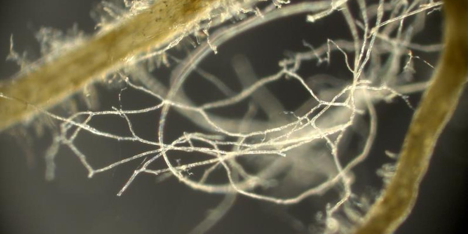“De plantenwortel is verbonden met de schimmel en krijgt daardoor toegang tot het mycelium: het netwerk van schimmeldraden waarmee de schimmel heel efficiënt voedingsstoffen en water opneemt. Plantenwortels zijn daarin lang niet zo efficiënt en daarom profiteren planten van mycorrhizaschimmels. Planten kunnen daarentegen via fotosynthese koolstofdioxide omzetten in suikers (energie) die weer bij de schimmel belanden. Zo profiteren ze allebei.”