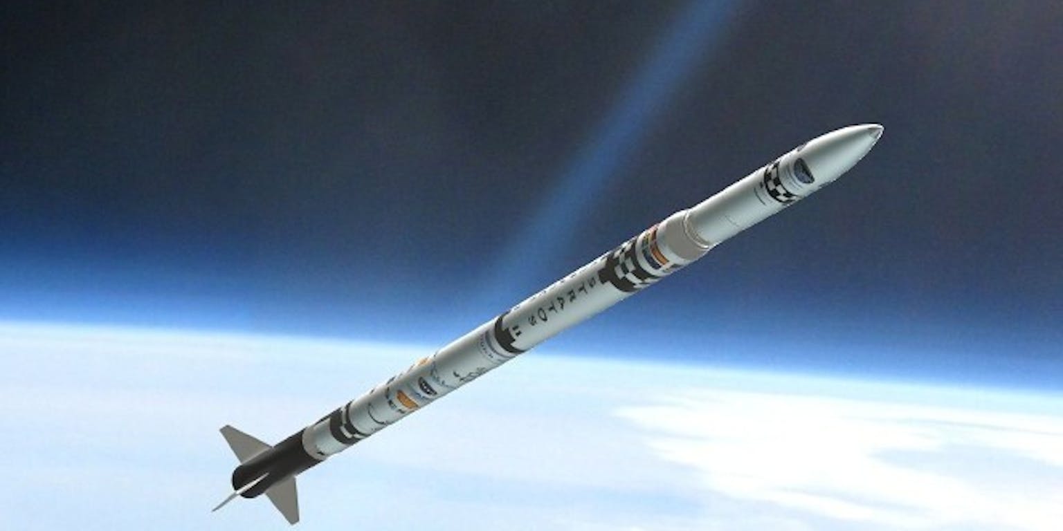 Impressie van de Stratos II-raket op een hoogte van 50 kilometer.
