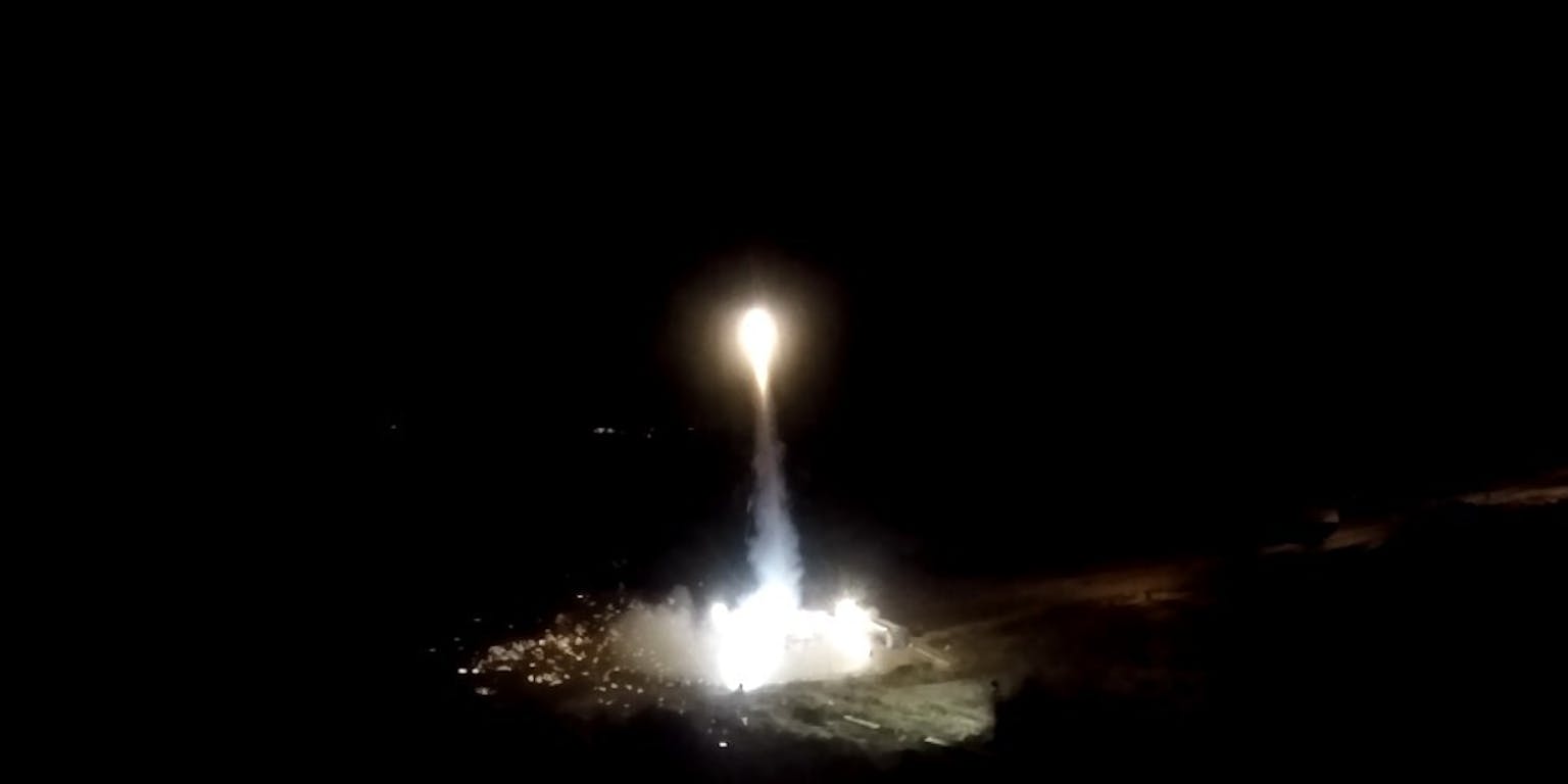 De Stratos II+ raket verlaat het lanceerplatform met een enorme snelheid.