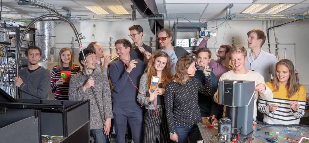 Sophie Hermans voor NEMO KennislinkTwee weken later. Beide experimenten zijn klaar, het is gelukt! De resultaten zijn nu wel duidelijk! We hebben zowel verstrengeling van drie deeltjes aangetoond als verstrengeling geteleporteerd. Dit is nog nooit eerder gedaan en is een grote stap voor ons onderzoek naar een quantuminternet. Nu is het zaak om dit netjes op te schrijven en te delen met de rest van de wetenschappelijke community, maar het zware werk zit erop.