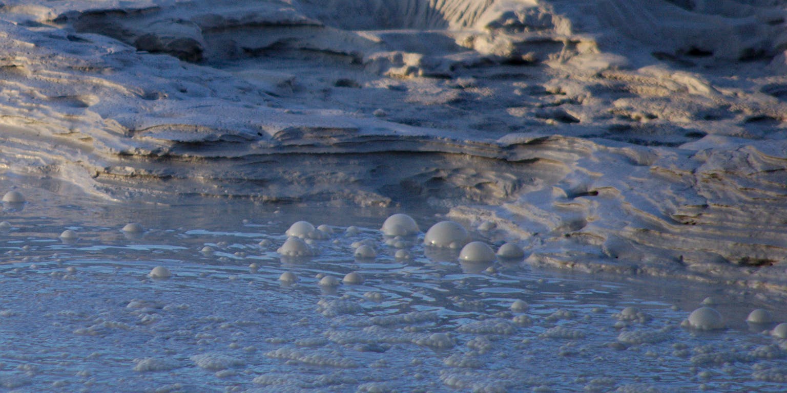 Zwavelhoudende modderpoel bij de Solfatara, een nog actieve vulkaan in de buurt van Napels. Of de ‘oersoep’ er zo uit zag weten we niet, maar we weten wel dat zwavel in hoge concentraties aanwezig was op de pre-biotische aarde (voordat er leven was).