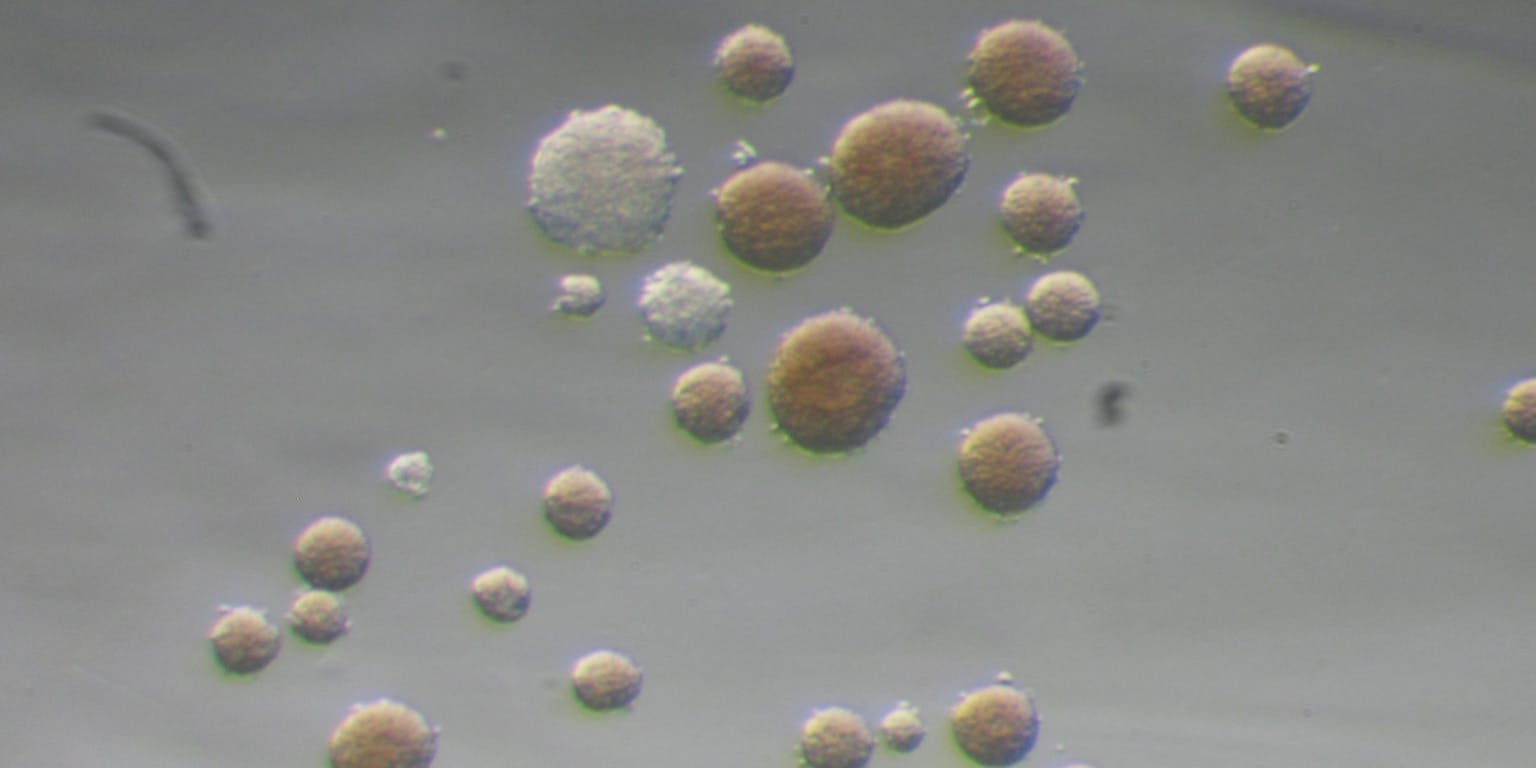 Geïsoleerde eilandjes van Langerhans, zichtbaar gemaakt onder de microscoop.