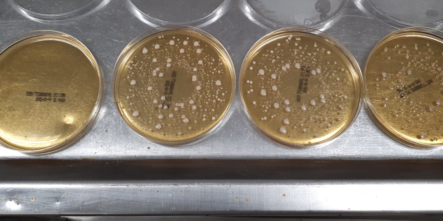 Na het uitplaten verdwijnen de bacteriën voor ongeveer 48 uur in een stoof van 37°C. Onder die omstandigheden kunnen de meeste bacteriën, die binnen het bedrijf gebruikt worden, zich goed vermenigvuldigen. Als de bacteriën gegroeid zijn, telt een medewerker hoeveel kolonies er in een petrischaaltje zitten. Dat gaat deels geautomatiseerd. Door een aantal kolonies ‘aan te tikken’, telt het apparaat en berekent het op basis van een raster hoeveel bacteriën er ongeveer aanwezig zullen zijn in het hele schaaltje.