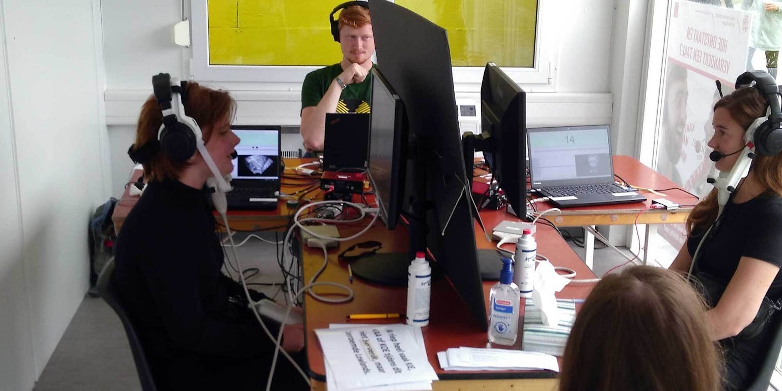 Wieling: “We gaan deze fonetische convergentie onderzoeken door naar de uitspraak van de verschillende woorden te kijken. Verandert die gedurende het experiment? En leidt verandering tot succesvollere communicatie?” Bij deze analyse speelt de grote, witte stift die proefpersonen onder hun kin dragen een rol. Het is een echoapparaat zoals dat ook gebruikt wordt bij zwangere vrouwen. Dit keer registreert het alleen niet wat zich in de baarmoeder afspeelt, maar de bewegingen van de tong en de lippen. Zo kunnen de onderzoekers naast het geluidssignaal, ook kijken naar de articulatie.