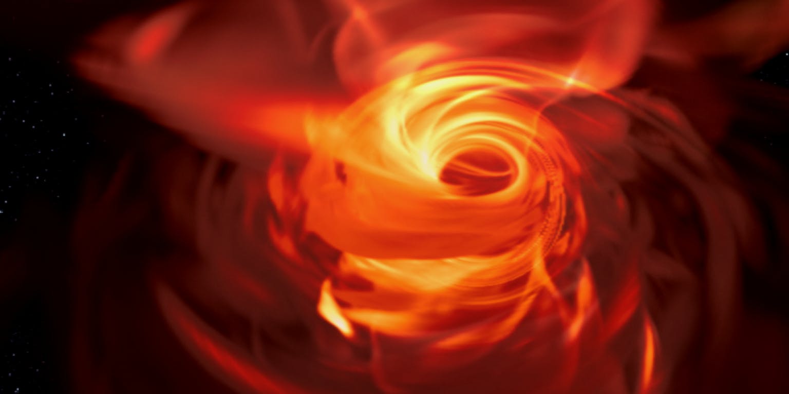 Een van mijn nieuwste visualisaties die deze week gepubliceerd is kun je hierboven zien. In de video bevind je je dichtbij het zwarte gat in het centrum van de Melkweg. In de verte zie je een sterrenhemel die wordt vervormd door de aanwezigheid van het zwarte gat. Dan gooien we als het ware materie in het zwarte gat. Die materie begint tijdens zijn val op te lichten. Hoe dichter het bij komt, hoe heter het wordt en hoe geler het er uit ziet. Op een gegeven moment schiet er aan de boven- en onder kant een straalstroom van deeltjes uit, deze deeltjes volgen extreem sterke magneetvelden en ontsnappen zo aan het zwarte gat.