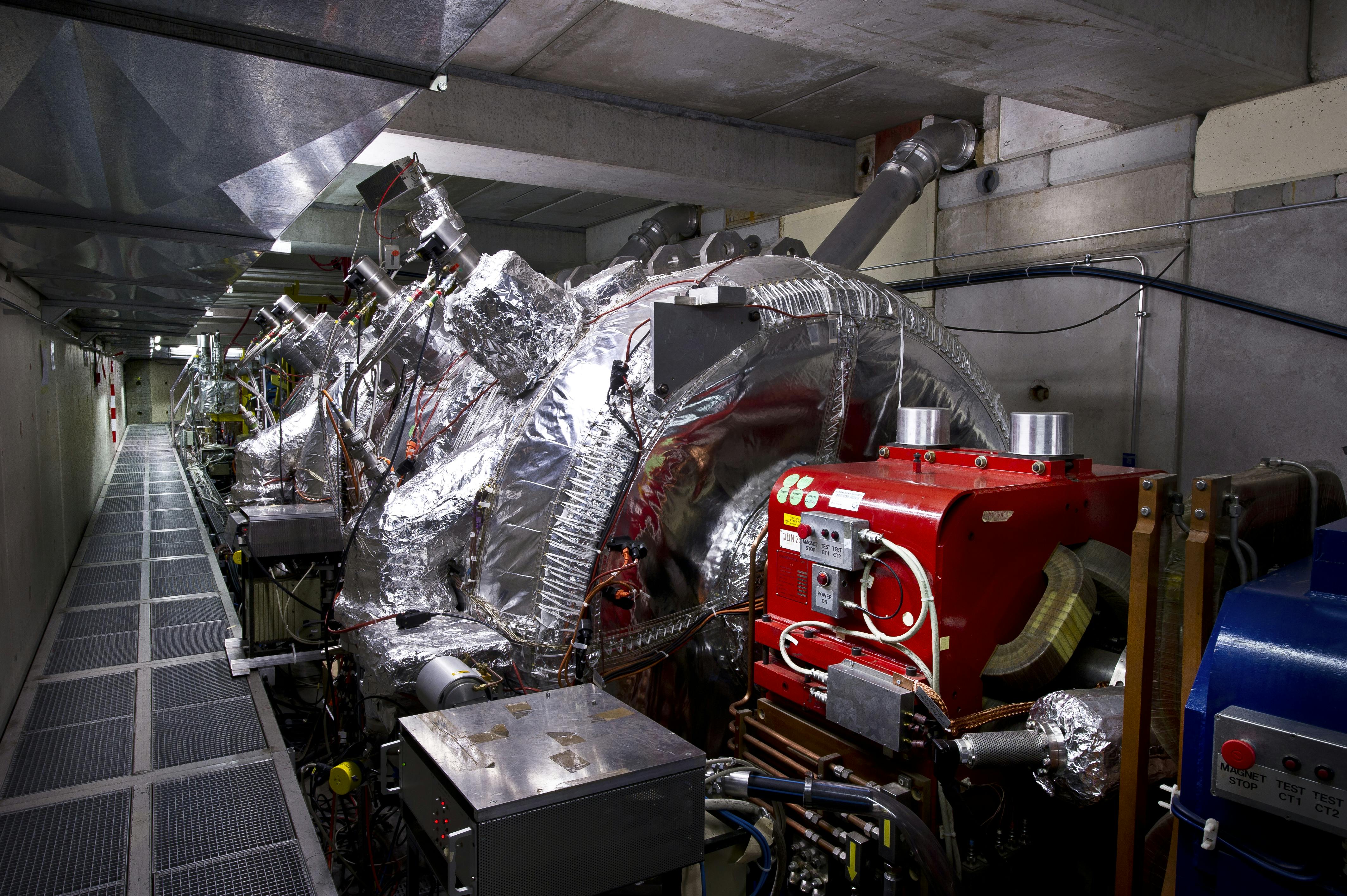 Deeltjesvertrager ELENA in de antimateriefabriek van CERN. Deze remt antiprotonen uit een grotere vertrager verder af zodat ze geschikt zijn voor experimenten in de fabriek.