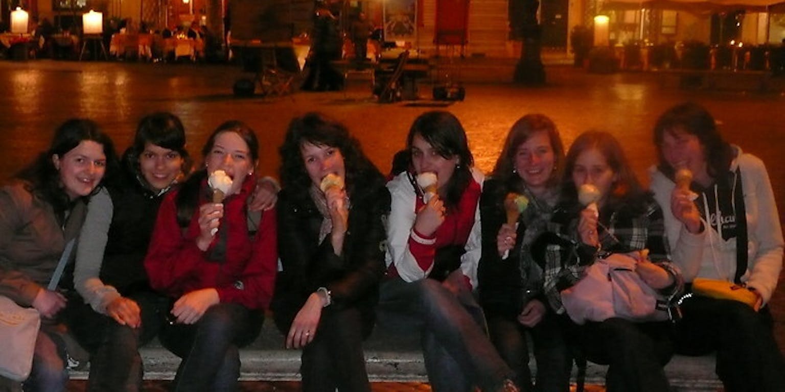 Met mijn vriendinnen een ijsje eten op Piazza Navona tijdens de Rome-excursie (2008).