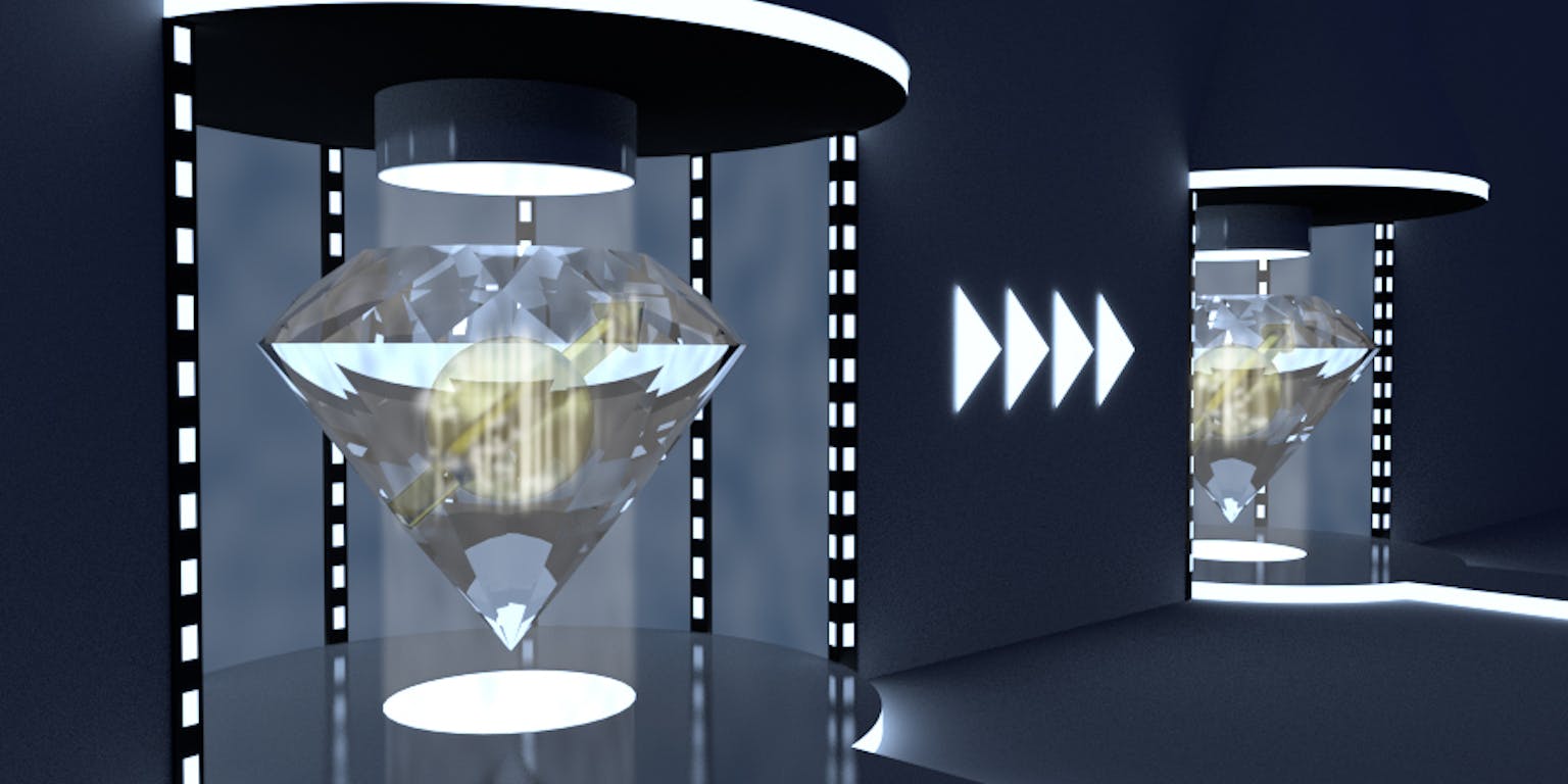 Voor hun teleportatiemachine gebruikten de wetenschappen twee diamanten, waarin ze elk een elektron wisten te ‘vangen’. Dat lukt op de plek van imperfecties in de diamant. Wanneer er bijvoorbeeld in plaats van een koolstofatoom een stikstofatoom in het kristalrooster zit met daarnaast een missend koolstofatoom dan kan op die plek een elektron worden vastgehouden.