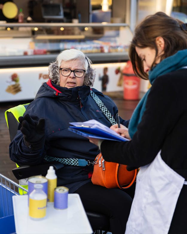 Een vrouw met haar fiets aan de hand werpt een vlugge blik op het winkelkarretje. Ze heeft wel ‘heel even tijd’ om wat vragen te beantwoorden. Ze is sceptisch, vertelt ze, vooral over de relatie tussen wetenschap en de farmaceutische industrie: “Onderzoek wordt beïnvloed door investeerders die een bepaald belang hebben bij een uitkomst. Antidepressiva bijvoorbeeld worden gepusht door een kleine groep. De wetenschap is niet absoluut. Wie betaalt, bepaalt.”