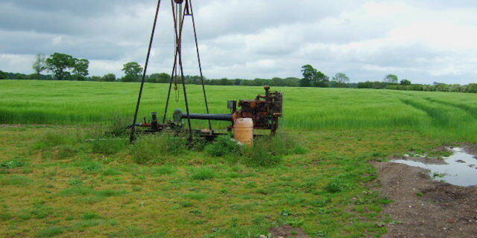 John Poyser, via geograph.org.uk, CC BY-SA 2.0Er is in de afgelopen halve eeuw dus ongeveer 0,35 miljoen kubieke kilometer de bodem in gesijpeld. Intussen is er echter ook (deels ouder) water aan de bodem onttrokken. “We halen sneller water uit de grond dan de natuur de voorraad weer aanvult”, zegt Tom Gleeson, Canadees hydrogeoloog en hoofdauteur van het artikel. Dat verandert grondwater van een onuitputtelijke delfstof in een grondstof die uiteindelijk op kan raken; hoewel dat voorlopig nog niet te verwachten is.