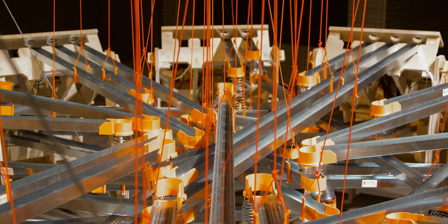 In het Eindhovense Klokgebouw laat Nelissen trots de installatie zien die ze in drie maanden hebben ontworpen en gebouwd. Het is een ingewikkelde constructie: een soort metalen knikkerbaan met eromheen allemaal beeldschermen.