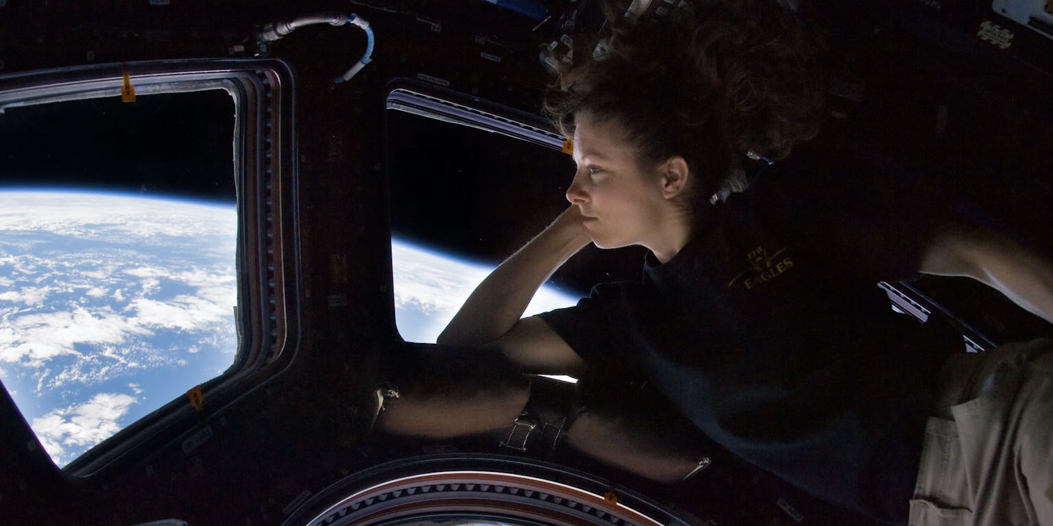 Een astronaut tijdens een ‘ruimtewandeling’.