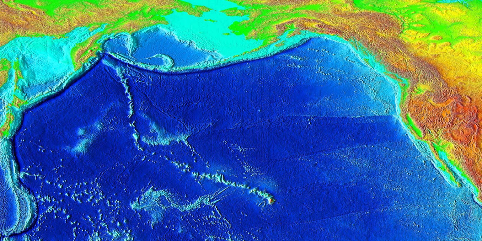 Hawaï is het jongste eiland van de Hawaï-Emperor-vulkaanketen. Deze keten vertoont ongeveer halverwege, waar de vulkanen zo’n 47 miljoen jaar oud zijn, een opmerkelijke knik. Het spoor dat door de hotspot door de korst heen werd getrokken, veranderde toen plotseling van richting.