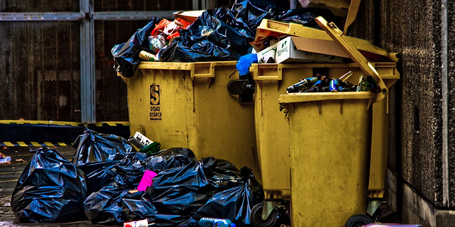 Misschien mag deze oranje afvalzak over een paar jaar nog maar een soort afval bevatten.