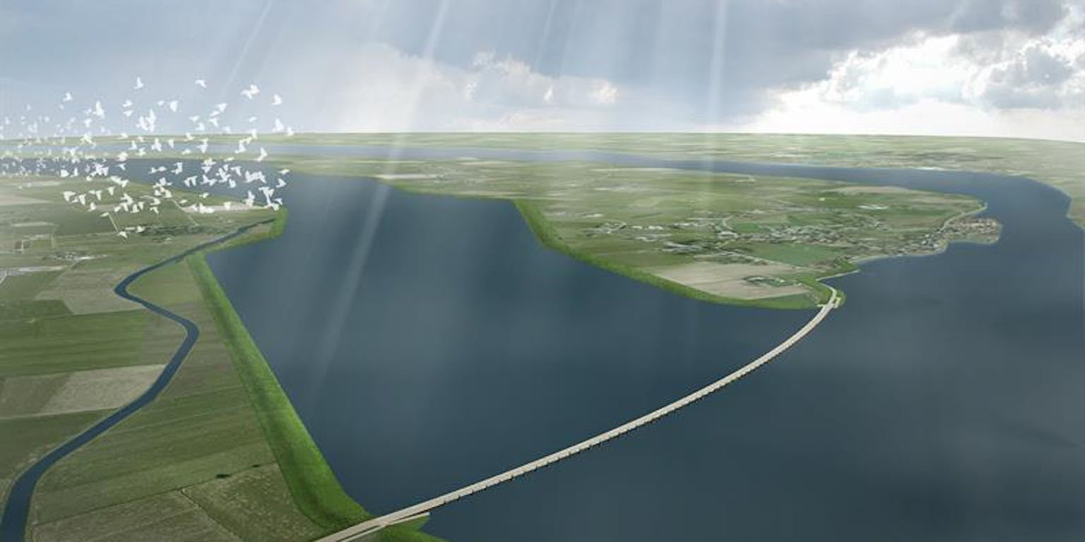 Hoogwatergeul in werking, gezien vanuit zuidelijke richting (artist impression)