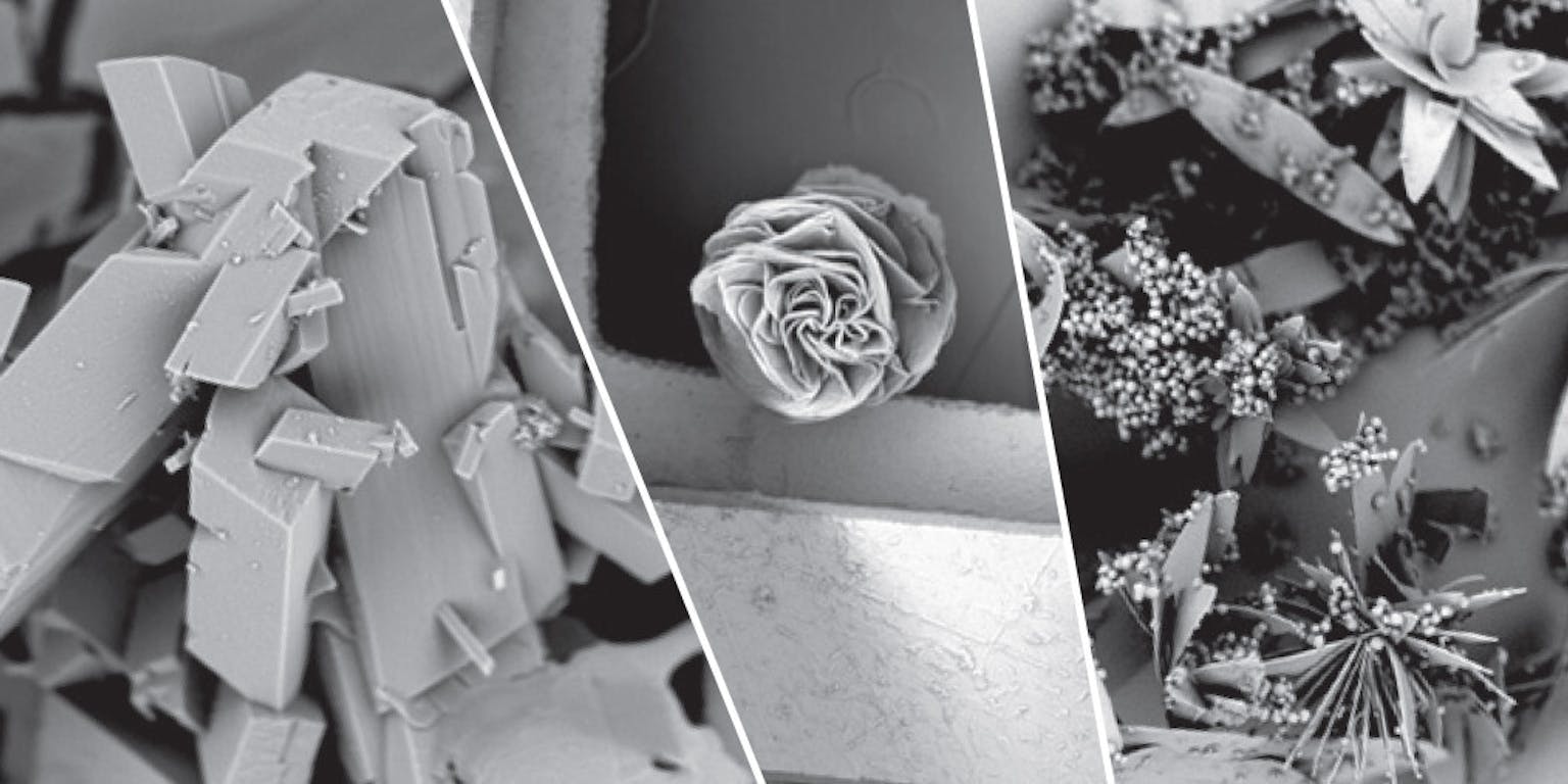 Voorbeelden van een aantal colloïddeeltjes uit het onderzoek. Deze zijn niet persé praktisch toepasbaar, maar leveren wel mooie plaatjes op!