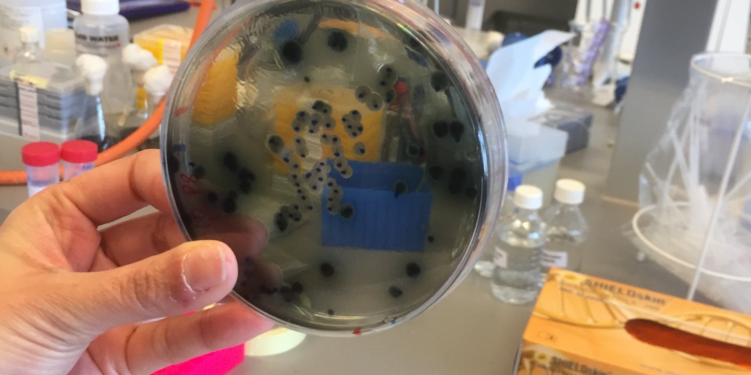 “Tijdens mijn promotieonderzoek werkte ik met cross-feeding in bacteriën. In een groep groeien bacteriën niet onafhankelijk van elkaar: ze hebben allerlei interacties met elkaar. Dat kunnen negatieve interacties zijn, bijvoorbeeld het produceren van giftige stoffen om andere cellen te doden, of positieve interacties, bijvoorbeeld het uitwisselen van cruciale voedingstoffen die de bacteriën nodig hebben om in leven te blijven. Aminozuren zijn de bouwstenen van eiwitten en zijn daarom van levensbelang voor de cel. Ik onderzocht of de bacteriën elkaar in leven konden houden als zij zelf een bepaald aminozuur niet meer konden produceren, maar hun buurman wel.”
