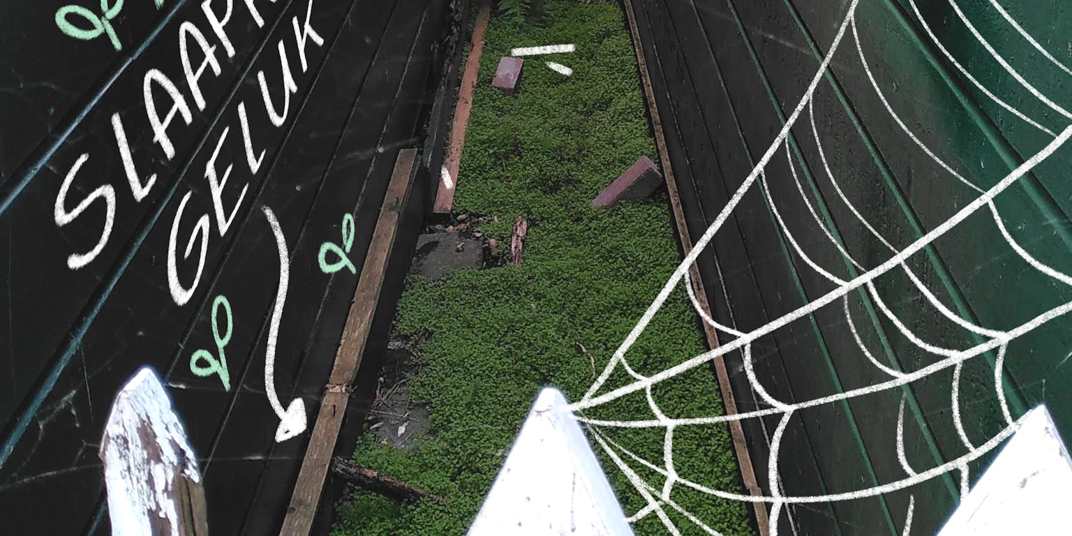 Een plantje als Slaapkamergeluk en verschillende soorten varens groeien vaak in de schaduw tussen huizen. Slaapkamergeluk is klein maar kan grote stukken grond bedekken als een zachte groene deken. Ik vraag me af welke beestjes onder die deken wel eens een dutje doen. Muisjes, egels, kikkers, lieveheersbeestjes en andere kevertjes misschien? Vroeger hadden mensen deze plant in hun slaapkamer staan als kamerplant, dus als je hem vindt geeft hij jou vast mooie dromen.