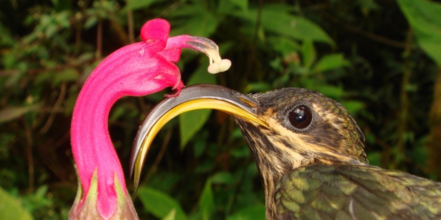 Hoe de kolibrie 22 miljoen jaar geleden voet aan de grond kreeg in Zuid-Amerika blijft evenwel een raadsel, aldus McGuire. Want deze vogeltjes zijn sterk afhankelijk van buisvormige, vaak rode bloemen die samen met de betreffende kolibriesoort zijn geëvolueerd (co-evolutie). Niet alleen de vogel heeft zich aangepast aan de (vorm van de) bloem, maar de kolibrie zelf heeft de plant ertoe aangezet een nieuwe vorm te ontwikkelen, uniek voor de gespecialiseerde kolibriesoort.