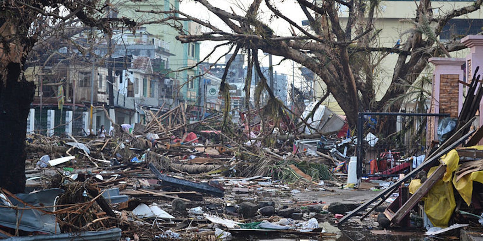 Schade op het eiland Leyte (Filipijnen) na tyfoon Haiyan in november 2013.