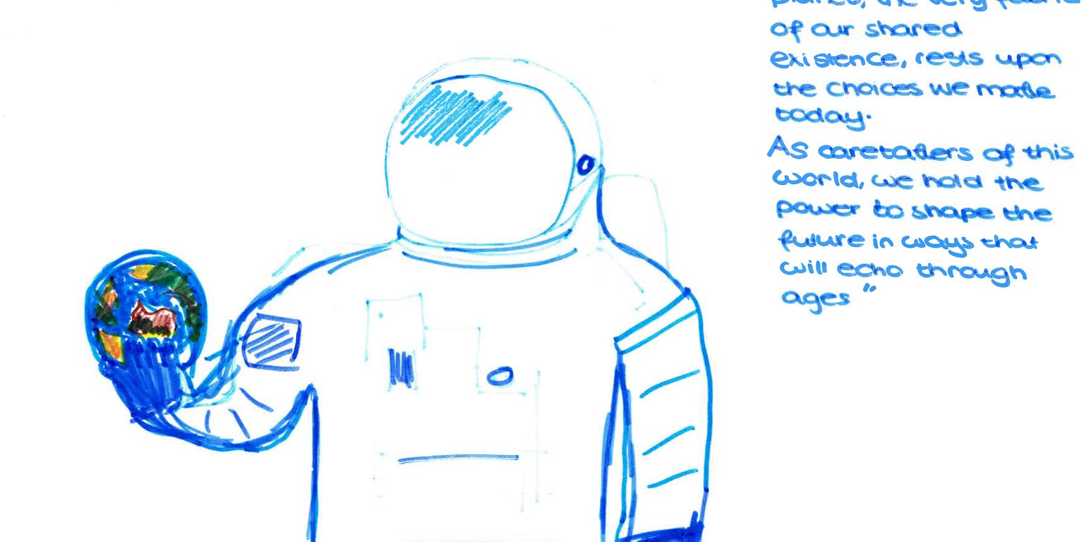 Ze bladert verder en verzucht bij de tekeningen met een aarde erop dat ze zich ook kan storen aan het frame dat we onze planeet gezond moeten maken. Dat is volgens haar een te beperkt beeld. “We kunnen het ons nauwelijks voorstellen, maar de aarde is ook ooit een grote ijsbal geweest. Extreme temperatuurwisselingen zeggen daarom weinig over of de aarde zelf gezond is, maar vooral iets over hoe wij als mens deze planeet kennen.” Dat neemt niet weg dat de mens mede-veroorzaker is van deze klimaatverandering, benadrukt Veenman. “Maar dat we dat willen aanpakken, doen we in eerste instantie toch echt voor onszelf.”