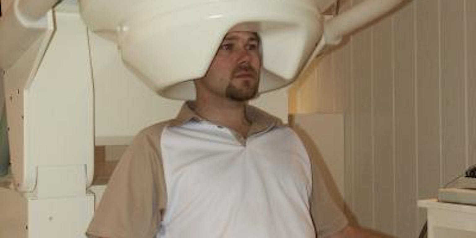 De MEG scanner die we hiervoor gebruiken is een groot apparaat dat nog het meest weg heeft van een kruising tussen een luxe ligstoel en een grote versie van de haardroogkap bij de kapper. In deze haardroogkap zitten een soort sensoren die extra gevoelig zijn voor de magnetische velden die ik onderzoek. Die sensoren zitten over het hele haardroogkap-gedeelte dat proefpersonen om hun hoofd hebben zodat we magnetische velden over het hele brein kunnen bestuderen.