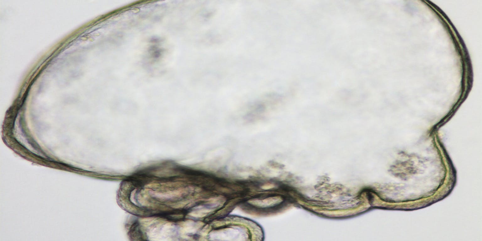 Een microscoopopname van een gekweekte leverorganoïde van muizencellen.
